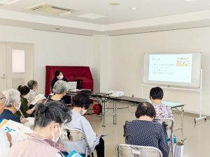 今年度、当会は東近江市から委託を受け、介護予防日常生活サービス事業を開始しました。通称「パタカラ教室」。この「パタカラ」は「パ」「タ」「カ」「ラ」という音を使うことで、口や舌の筋肉を鍛える嚥下体操がそもそもの由来です。食べ物を飲み込むために必要な筋肉を効率よく鍛えることを目指し、運動機能向上・口腔機能向上・栄養改善・認知症予防を学び、自分らしく生活する力を育むための全12回のプログラムで構成しています。「杖を持たずに歩く歩数が増えた」、「背筋が伸びた」と体の変化を感じる方、「ここに来て話すことが楽しみ」と教室をきっかけに再会した方や教室の回を重ねるうちに顔なじみになる方など、様々な効果を感じています。介護の仕事というと「介護が必要になった人を支える」イメージを持つ人が多いかもしれません。しかし、“介護が必要になる前”からの支援、つまり「介護予防」の取り組みも大切な役割です。