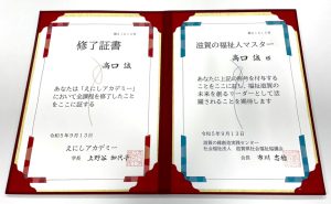 自分の役割は「他者の幸せを追求して実現する為の活動を行うこと」。福祉専門職として、また組織管理者として、そして滋賀の福祉人マスターという肩書きに恥じぬよう、これからも日々精進していきたいと思う。