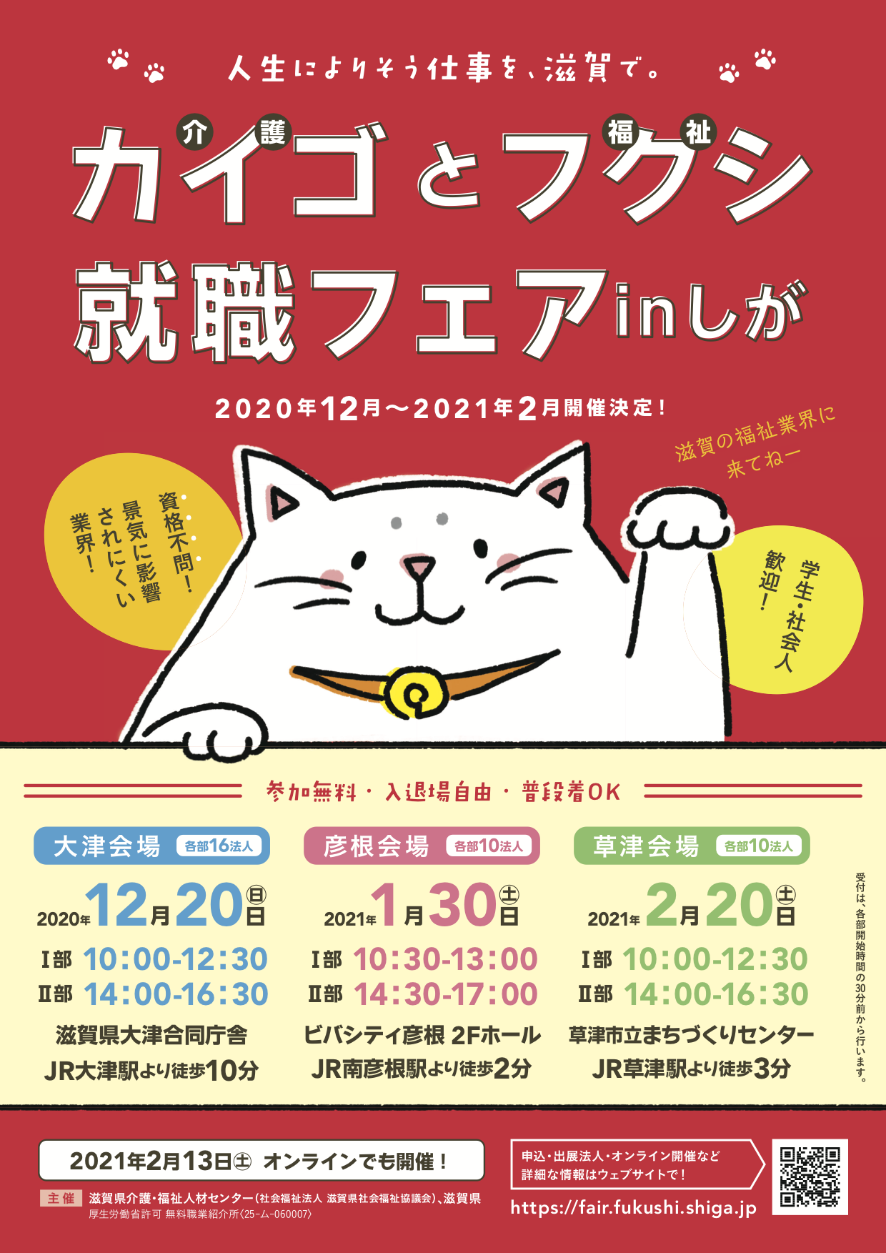 R3年2月13日(土)カイゴとフクシ就職フェアinしが@オンライン開催に出展します