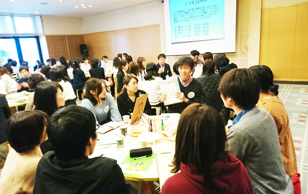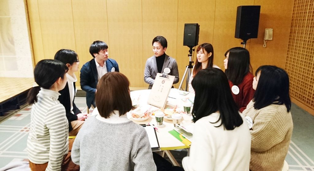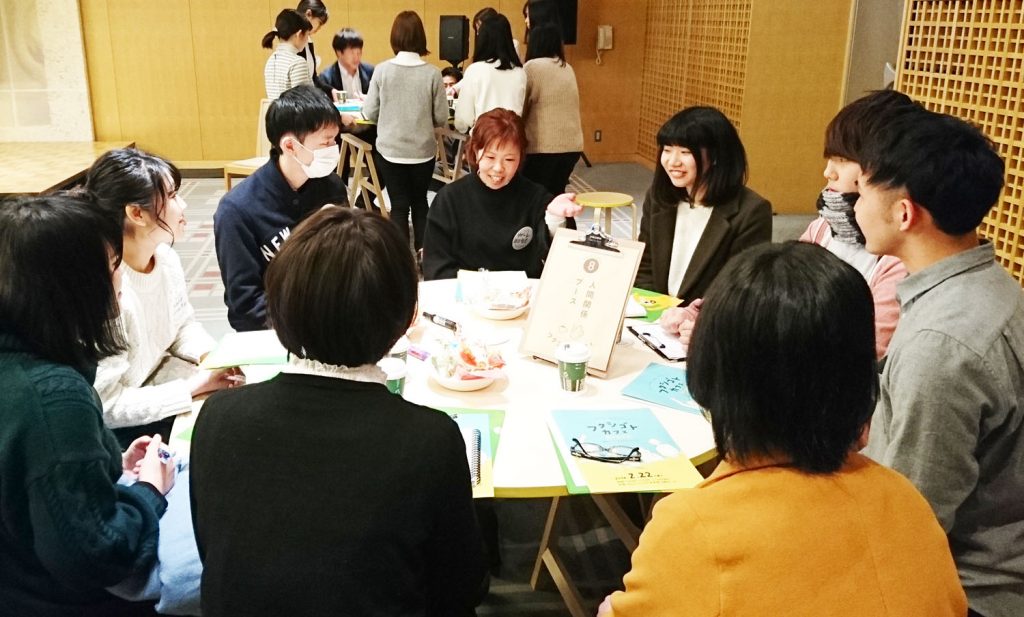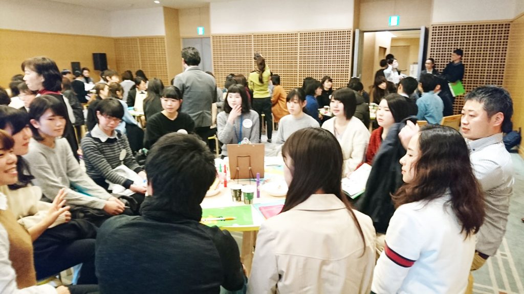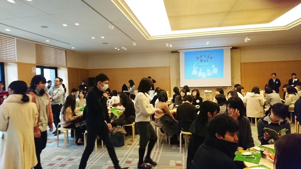 これは、旧知の社会福祉法人が集まり、1日だけの「カフェ」をオープンさせ、そこで学生たちへ福祉の仕事や働くパーソナルのリアルを伝えようとするもの。参画したのは、南山城学園、みねやま福祉会、嵐山寮、福知山学園と社会福祉法人グループリガーレ。3月1日の就職活動解禁前に、Face to Fukushiの企画協力を得て、実現した。参加学生は80名。