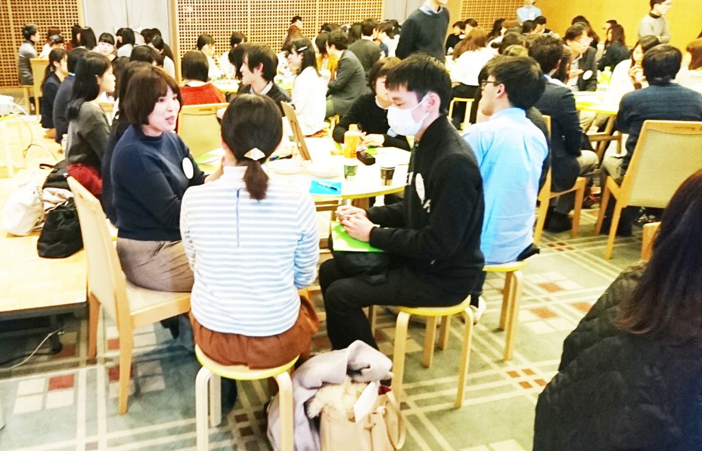 オープニングトークの次は、ブース(テーブル)型説明会。ここでは学生へ直接、社会福祉法人で働くスタッフが働き方や暮らし方のリアルを伝える試み。今回の目玉企画である。ポイントは法人毎ではなく、テーマ(下記)毎にブースを設定したということ。個々の法人PRよりも、実際に働く人を各テーブルに座ってもらい、生の言葉で「福祉現場で働くこと」を伝えたかったからである。